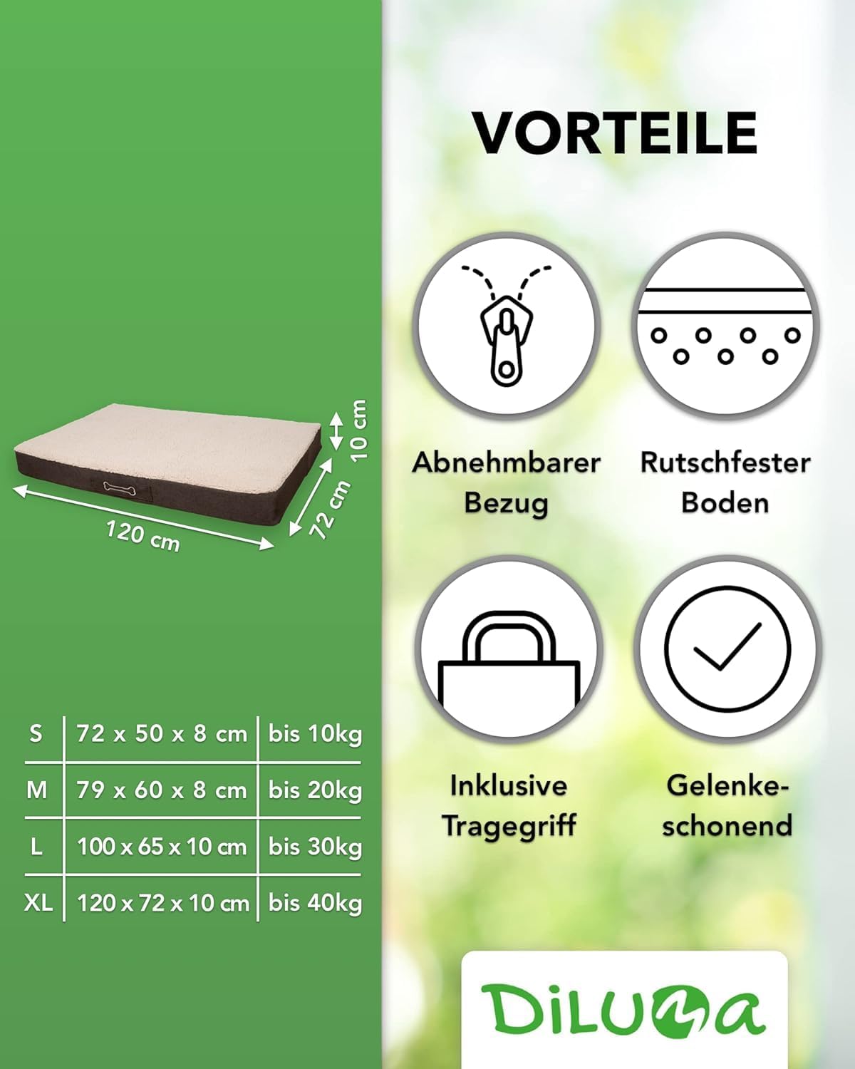 - Pflegeleicht: abnehmbarer, waschbarer Bezug – hygienisch und alltagstauglich.