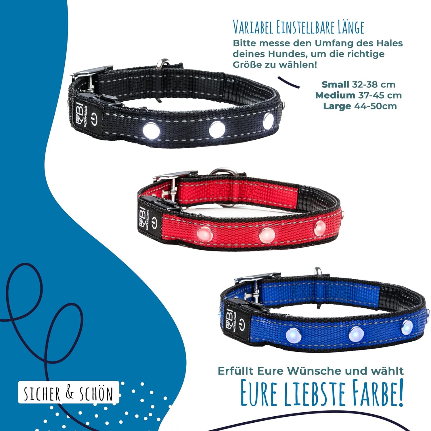 LED Hundehalsband, Leuchthalsband mit 5 leuchtenden Steinen