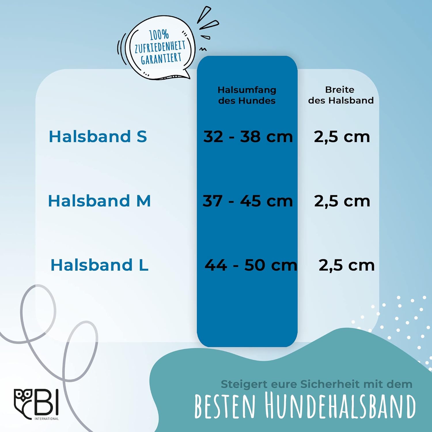 Dank des wetterfesten und strapazierfähigen Designs ist das Halsband ideal für alle Jahreszeiten und hält auch bei Regen oder Schnee stand. Es bietet komfortablen Tragekomfort und ist für Hunde jeder Größe geeignet – vom kleinen Hund bis hin zum großen Hund.