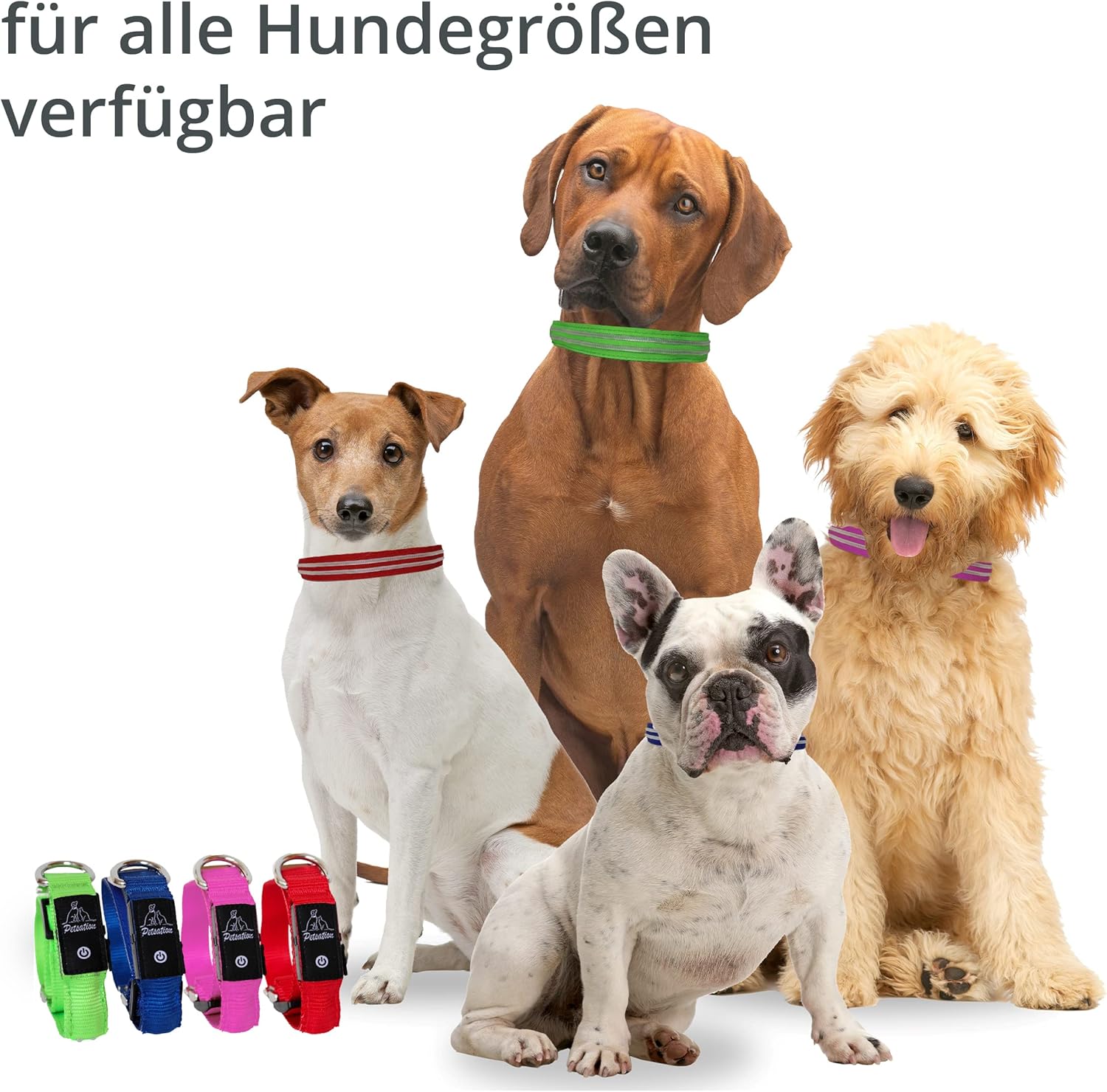 Petsation Leuchthalsband für Hunde [Das Original] Leuchtendes LED Hundehalsband spazieren gehen auch im Dunkeln Lange Akkulaufzeit – Sicher Dank hochwertigem Metallverschluss